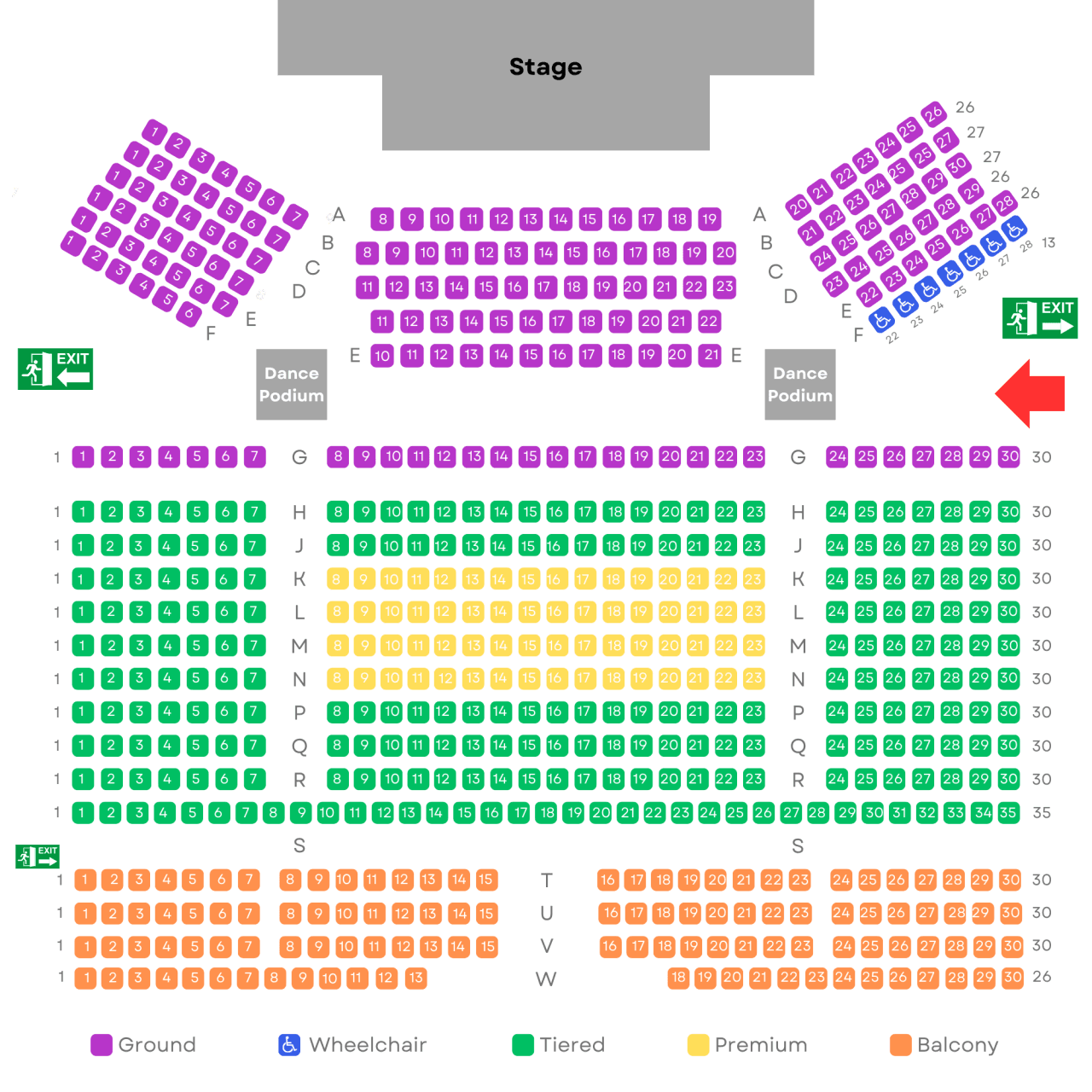 The theatre comprises a ground floor, tiered section and balcony.